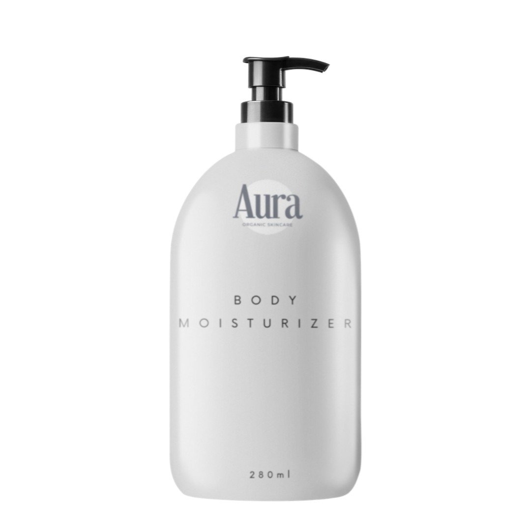 Aura’s organic body moisturizer is formulated to hydrate and nourish the skin, helping to lock in moisture and protect it from dryness and environmental stressors. It uses plant-based oils, butters, and humectants to replenish the skin’s natural barrier without synthetic ingredients.